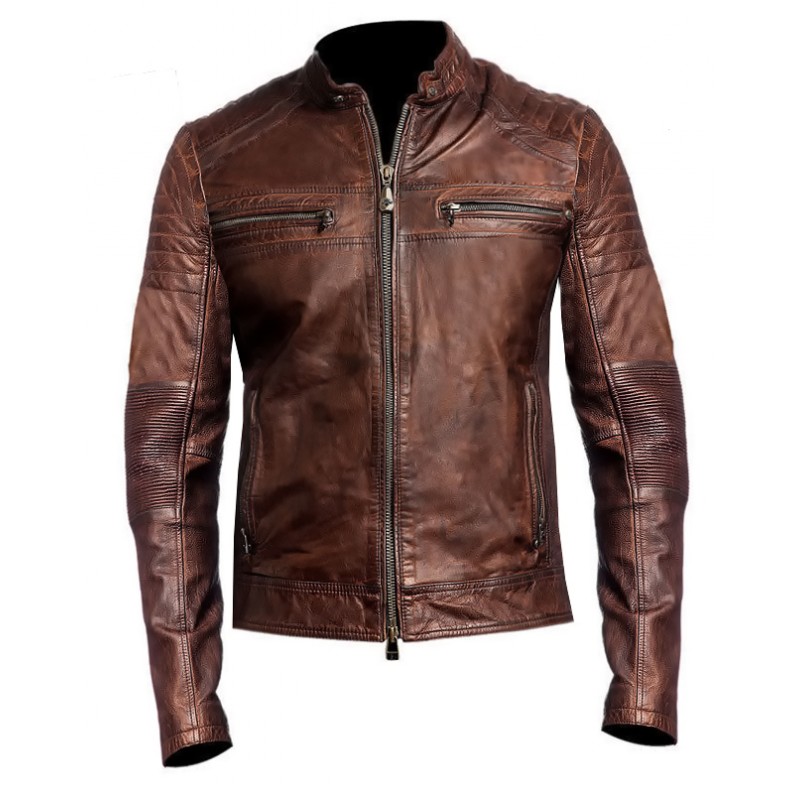 GHOST BROWN COW SKIN LEATHER MOTORCYCLE JACKET